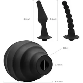 Enema Bulb, Anal Cleaner with 2 Replaceable Nozzles 380ml Silicone Unisex Shower Douche System for Anal Vaginal Cleaning