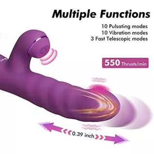 Rotating Beaded Thrusting Rose Rabbit Vibrator Adult Sex Toys for Women, G Spot Vibrator with Independent Clitoral Stimulator, 7 Thrusting & 10 Vibration Patterns Realistic Dildo for Beginners